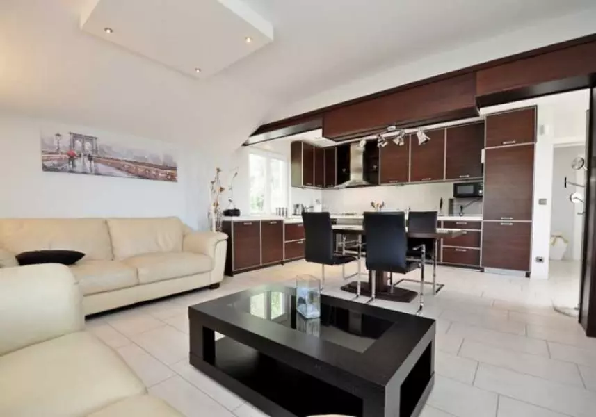На каждом этаже виллы – отдельный апартамент с двумя спальнями. Каждый из апартаментов – полностью автономен, и имеет полноценную кухню и ванную комнату, террасу с садовой мебелью.