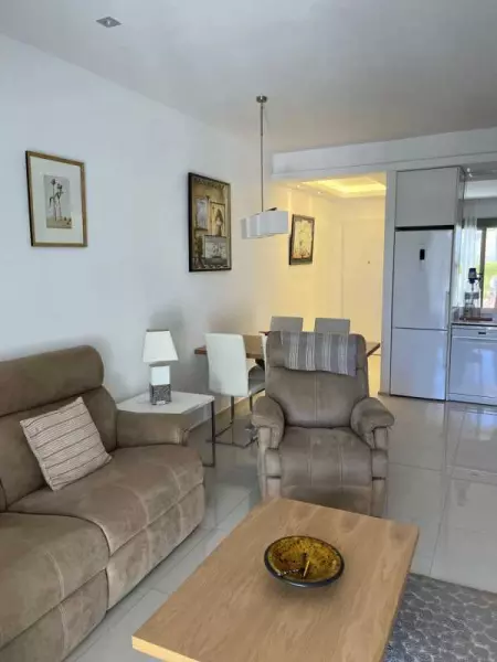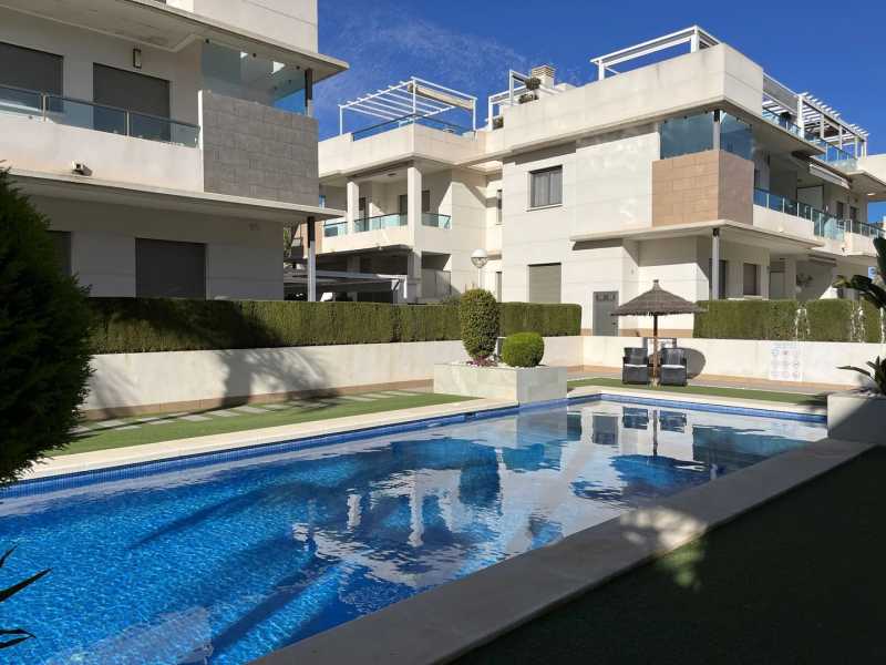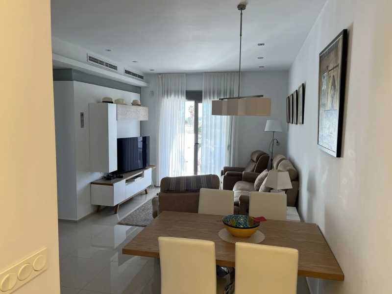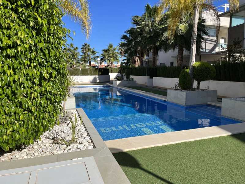 Состояние квартиры отличное, продается полностью с мебелью и оборудованием. Кухня американского типа полностью укомплектована, а на террасе организована зона отдыха и барбекю. В урбанизации есть общий бассейн, сад, парковочные места. Квартира расположена в шаговой доступности от таких супермаркетов, как LIDL, Consum, ALDI.