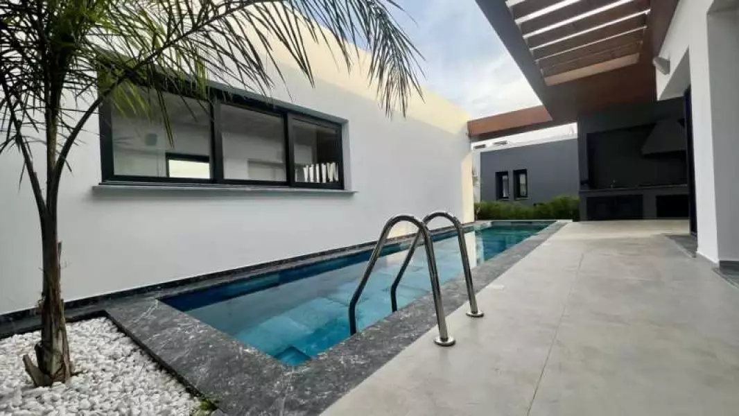 Бунгало предлагает просторную площадь 190 м2, включающую 3 спальни и гостиные зоны.