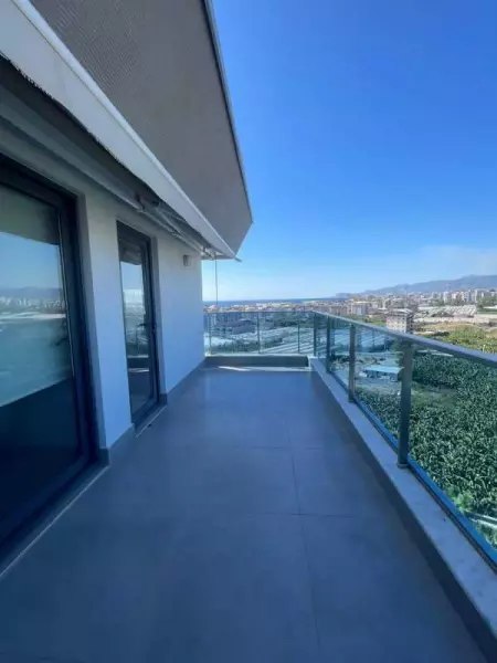 Квартира занимает 4 и 5 этажи пятиэтажного здания и обладает потрясающим панорамным видом на море, крепость Алании, горы и бассейн.