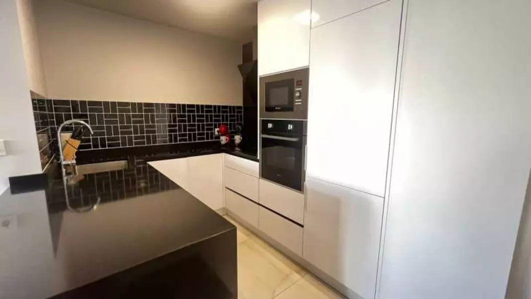 Зайдите внутрь, чтобы обнаружить открытую планировку с изобилием естественного света, проникающего через большие окна, создавая яркую и просторную атмосферу. Просторная гостиная область плавно переходит в современную, полностью оборудованную кухню с высококачественной техникой, стильными шкафами и элегантными столешницами, идеально подходящими как для повседневных приемов пищи, так и для развлечения гостей. Апартамент полностью кондиционируется и полностью меблирован, готов к заселению.
