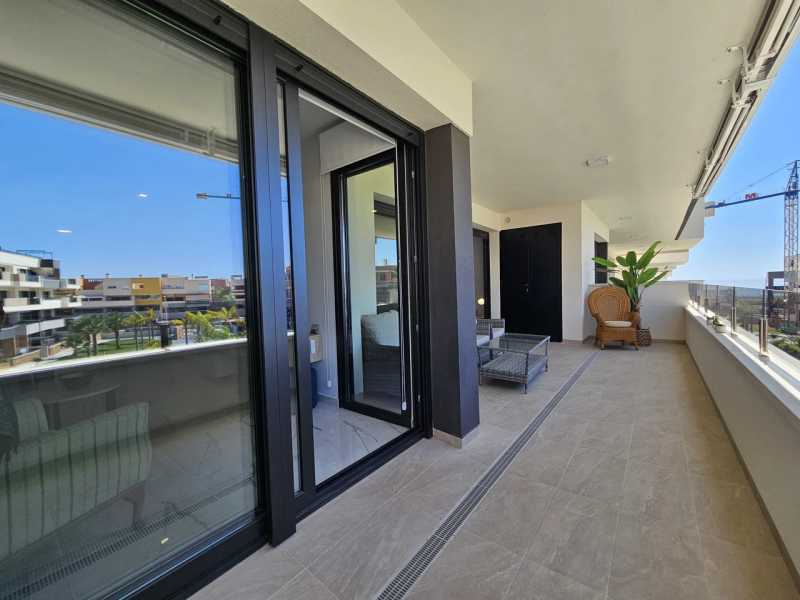 Квартира на втором этаже с видом на юг также имеет виды на море и бассейн, которые можно оценить с террасы площадью 23 м2. Внутри очень просторной квартиры находится широкая гостиная и столовая комната с ультра-современной полностью интегрированной кухней. По всей квартире установлены панорамные раздвижные двери от пола до потолка, обеспечивающие много естественного света и вид на море и бассейн из каждой комнаты. В главной спальне есть ванная комната, а также вторая гостевая комната и семейная ванная комната. Квартира отделана кондиционером, а в обеих ванных комнатах установлено напольное отопление. В квартире есть много дополнительных удобств, включая отдельное место на подземной парковке и кладовую, акустическую изоляцию, окна из ПВХ и электрические ставни. Недвижимость продается полностью меблированной и снаряженной.