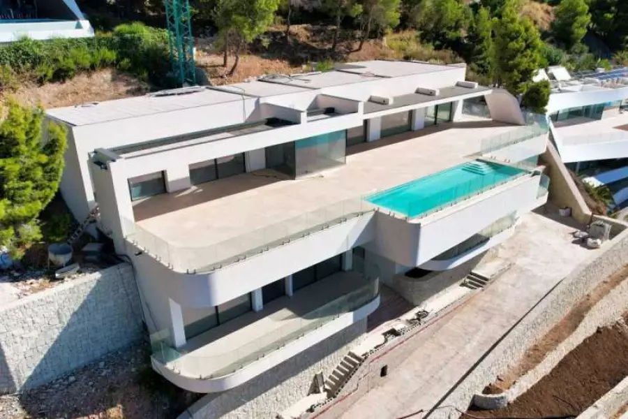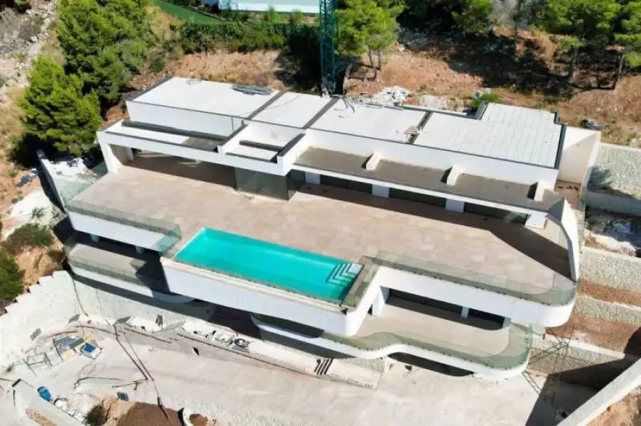 Вилла в три этажа, имеет шесть спален, шесть ванных комнат, множество террас, бассейн 50 кв.м., тренажерный зал 60 кв.м., подземный гараж на три авто. Главная спальня оборудована просторной гардеробной комнатой, в остальных спальнях есть встроенные шкафы. Из гостиной есть выходы на просторную террасу с видом на море, а также к бассейну и зоне барбекю. Дом оснащен предустановкой системы кондиционирования, также имеет теплый пол во всем доме и лифт.