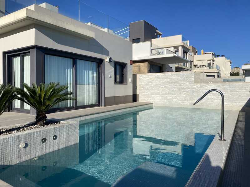 Добро пожаловать в эту исключительную недавно построенную роскошную виллу в Residencial Bellavista, Сан-Мигель-де-Салинас, предлагающую гармоничное сочетание современного дизайна и захватывающих видов. С общим количеством 5 спален и 4 ванных комнат, эта тщательно изготовленная недвижимость занимает два этажа и подвал, к которым можно подняться с помощью удобного лифта и потрясающей стеклянной лестницы с внутренним освещением.