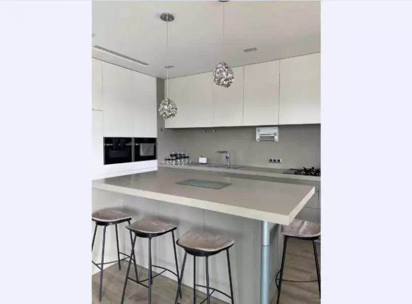 Эта современная вилла площадью 500 м2 расположена на большом плоском участке площадью 1000 м2 прямо на берегу моря в престижном районе Эль Кампелло. На первом этаже находится просторный гараж, помещение с собственным туалетом, лифт и кладовая для обслуживания дома. На втором этаже находятся две спальни, 2 туалета, кабинет, прихожая, потайная комната, которую можно превратить в бункер, кинотеатр или тренажерный зал. На втором этаже находится кухня, совмещенная с гостиной, туалет и главная спальня с туалетом, гардеробной и кабинетом. На крыше есть терраса. На участке есть бассейн.