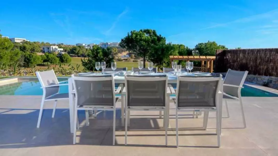 Вилла в один этаж площадью 150 кв.м. состоит из четырех спален, двух ванных комнат, открытой кухни с выходом в сад и просторной гостиной-столовой, отдельные выходы на террасу и солярий, где круглый год можно наслаждаться солнцем и видами.