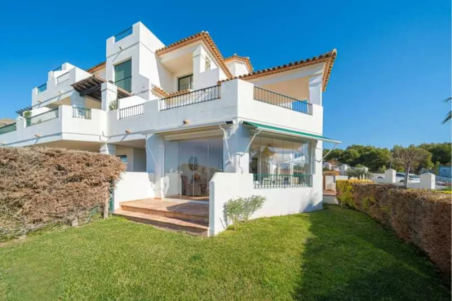 Представляем бунгало в жилом комплексе с бассейном на берегу Средиземного моря, расположенное в очень тихом районе Финестрата, в урбанизации Сьерра Кортина.