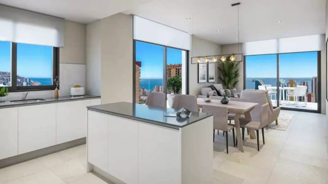 Представляем новый закрытый жилой комплекс в городе Бенидорм. Бенидорм самый космополитичный город в Испании, который привлекает не только туристов со всего мира, но и жителей других регионов Испании своим уникальным микроклиматом – самым мягким на всем Средиземноморском побережье страны. Этот город считается одним из ключевых курортов Испании, и прежде всего, выделяется среди остальных курортных городов побережья и всей страны своими многочисленными высотками. На суше город практически полностью окружен высокими горами, защищающими его от резких перепадов температур и холодных ветров. Кроме климата Бенидорм привлекает своими известными пляжами Levante и Poniente, брендовые бутики и аутлеты, ночные клубы, казино, бары и рестораны, парк аттракционов Terra Mitica, аквапарки Aqualandia и Agua Natura, тематические парки Mundomar и Terra Natura, концертный зал Benidorm Palace.