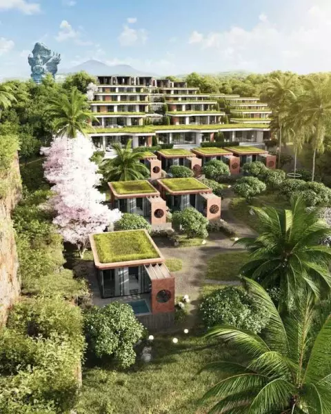 Комплекс расположен на живописном склоне с видом на океан и статую Гаруды. До моря всего 4500 метров.