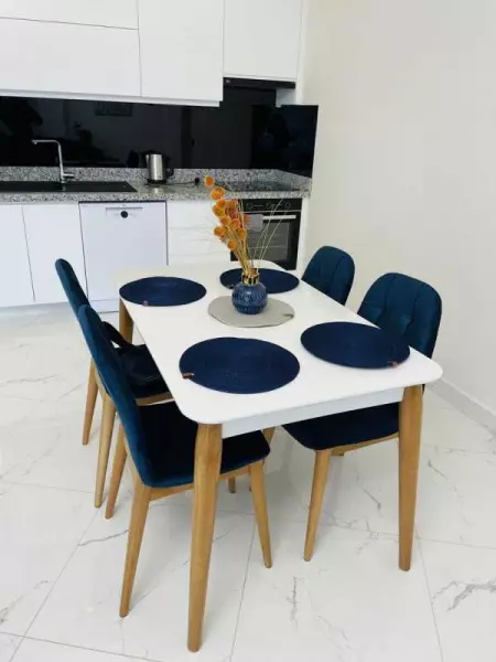 Квартира находится всего в 100 метрах от пляжа и предлагает потрясающий вид на море, создавая идеальную атмосферу для отдыха и жизни.
