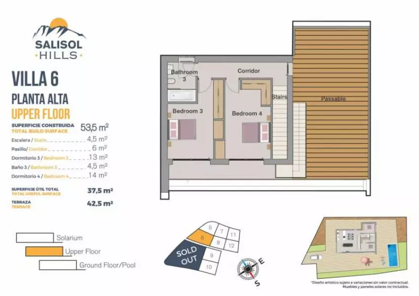 На участке площадью 532 кв.м. есть бассейн и парковка. Кухня укомплектована современной мебелью и высококачественной бытовой техникой. Из солярия на верхнем этаже открывается шикарный вид на море и горы с обзором на 360 градусов. Дом имеет современный дизайн – сочетание натурального камня и дерева придают интерьеру уют и роскошь. Приобретая данную недвижимость на этапе строительства можно оформить виллу по личному желанию!