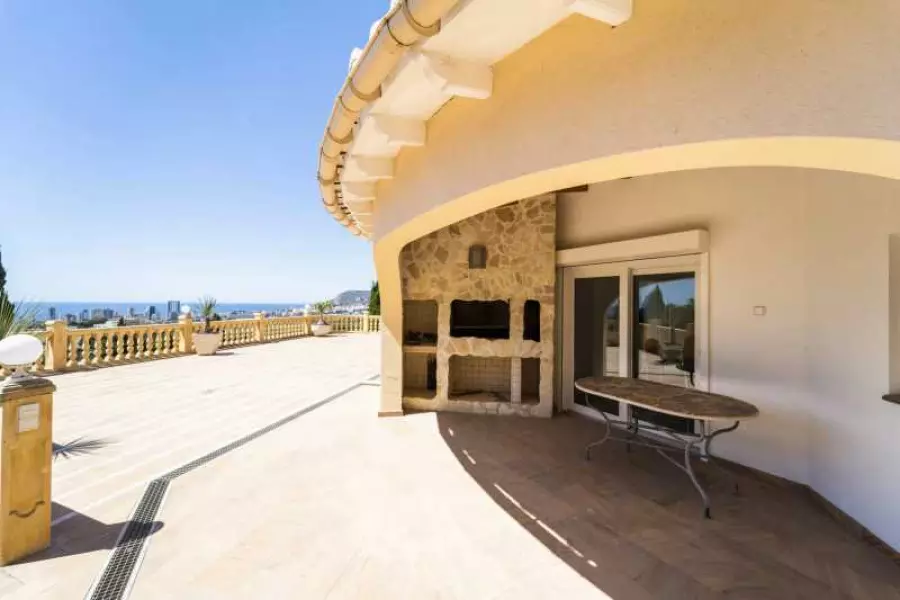 В продаже трехуровневая вилла площадью 636 кв.м. Дом состоит из просторной гостиной с камином, двух кухонь с барной стойкой, шести спален, шести ванных комнат, прачечной, больших гардеробных комнат, террасы у бассейна с красивыми панорамными видами. На участке площадью 2551 кв.м. есть собственный бассейн и зона отдыха, сад с фруктовыми деревьями. Вилла имеет два закрытых гаража для нескольких автомобилей. Кухни оборудованы всей необходимой техникой: духовка, микроволновая печь, стеклокерамическая плита, вытяжка, холодильник и посудомоечная машина.