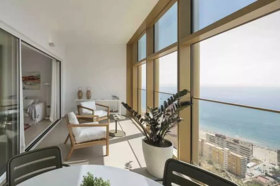 Квартира на 24 этаже площадью 74,98 кв. м. В квартире две спальни, одна ванная комната, просторная гостиная с кухней и обеденной зоной, большая терраса с фантастическим видом на море, горы и город.
