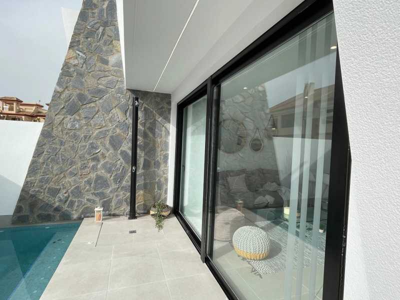 Вилла площадью 94 кв. м. имеет три спальни, две ванные комнаты, просторную гостиную, открытую кухню и террасу. Также есть просторный солярий, где можно оборудовать зону отдыха и барбекю. На участке площадью 160 кв. м расположен собственный бассейн, парковка для автомобиля, зоны отдыха.