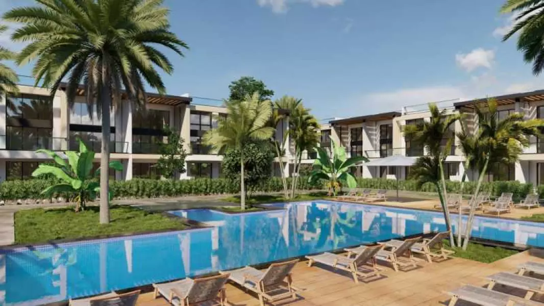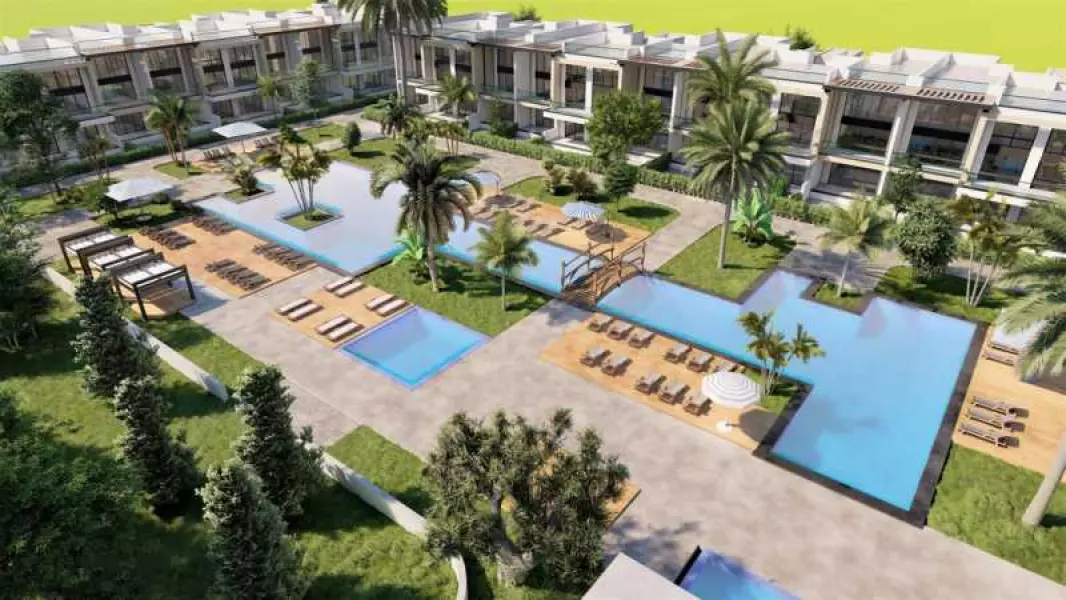 Современная квартира в уникальном жилом комплексе, состоящем из двухэтажных многоквартирных домов в районе Искеле.