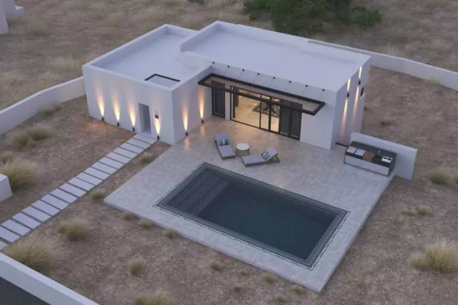 Вилла в один этаж состоит из трех спален, двух ванных комнат, просторной гостиной, открытой кухни и просторной террасы, откуда открываются панорамные виды на окрестности и средиземноморский лес.