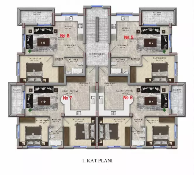 Высокие этажности домов (от 3 до 4) обеспечивают прекрасные виды, а удобное расположение в 150 метрах от центральной дороги делает его легко доступным.