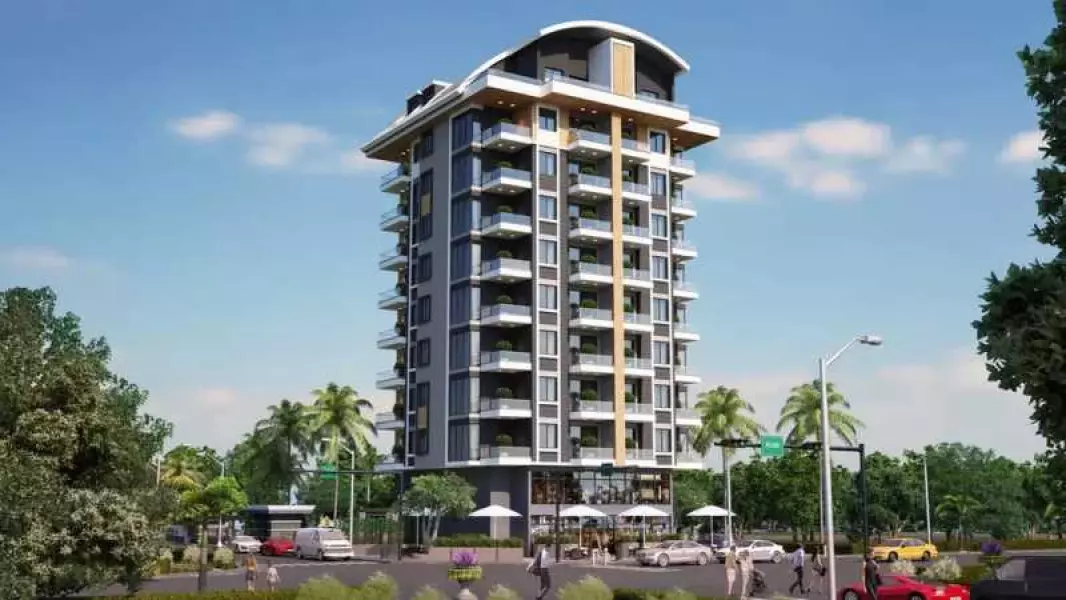 Новый проект расположен в районе Махмутлар, Аланья. На территории 2.018 м2 будет находится один 8-этажный блок, который будет состоять из 56 квартир различной планировки: