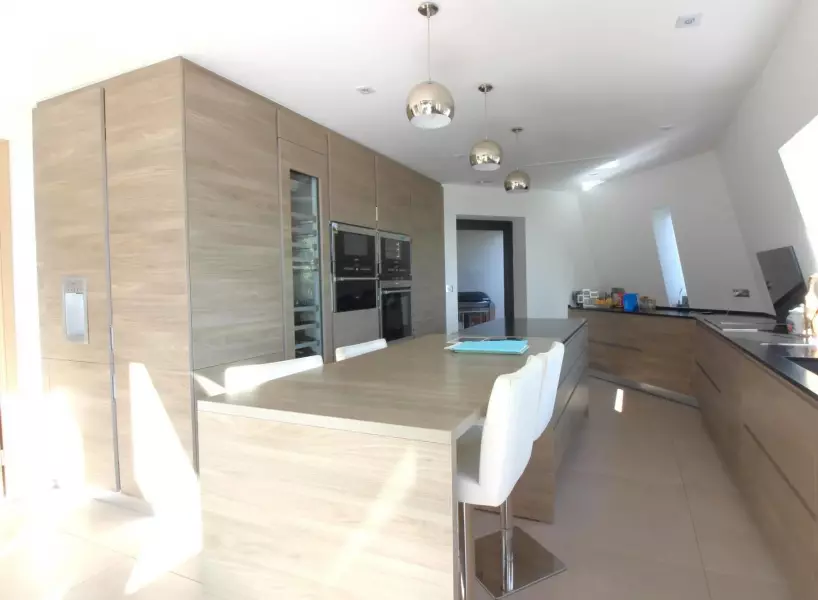 Вы по достоинству оцените комфорт, элегантность, современность и, конечно же, панорамный вид на море. Вилла оборудована кондиционером, а также сигнализацией, большим гаражом, в котором могут разместиться несколько автомобилей, оборудованным подъемным мостом, который спускается на более низкий уровень или где вас ждет складское помещение.