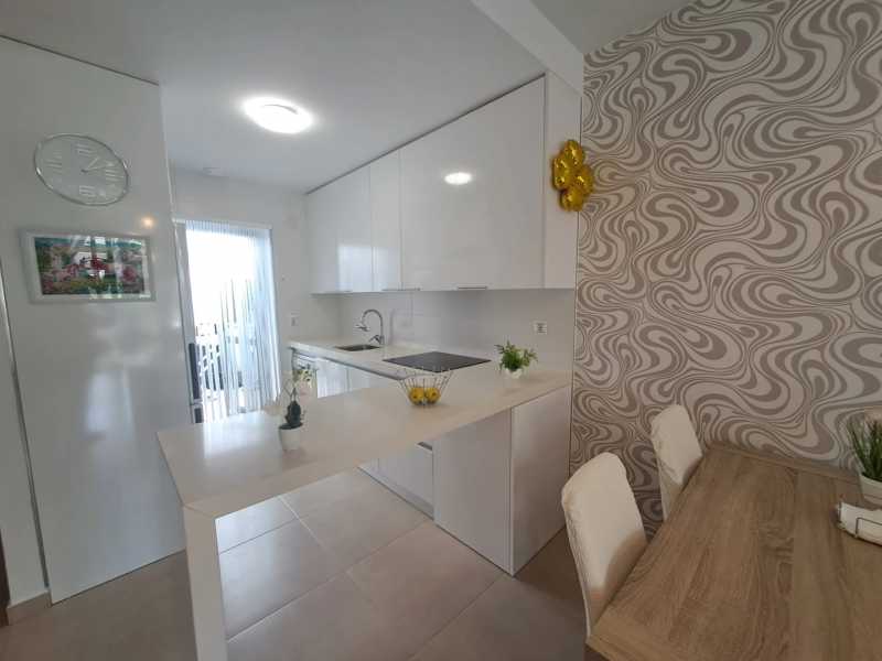 Продается современный таунхаус. Площадь постройки составляет 197 м2. Дуплекс имеет три спальни, три ванные комнаты, кухня объединенная с гостиной. Из кухни есть выход во внутренний двор, из гостиной есть спуск в подвальное помещение, где расположен гараж. На крыше расположен солярий. У входа в дом также есть еще одна терраса.