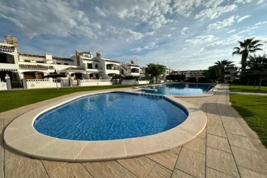 Представляем таунхаус с тремя спальнями в Ориуэла Коста, район Villamartin. Villamartin – это престижный жилой район с развитой инфраструктурой, особенно любимый европейцами. Здесь значительно больше зелени, чем на побережье, а спокойный и размеренный ритм жизни привлекает тех, кто ценит комфорт и тишину. Благодаря тому, что школы, торговые центры, рестораны, аптеки, автобусные остановки находятся неподалеку, этот район идеально подходит для проживания круглый год и сдачу в аренду.