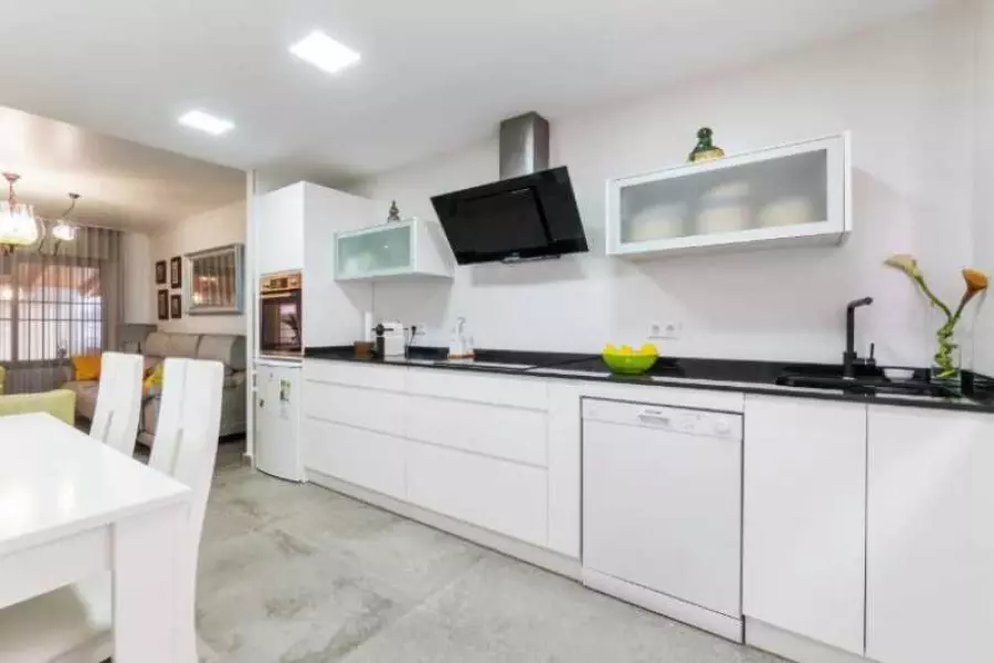 Таунхаус с четырьмя спальнями, тремя ванными комнатами, гостиной, хорошо оборудованной кухней, террасой. Таунхаус в очень хорошем состоянии, полностью меблирован.