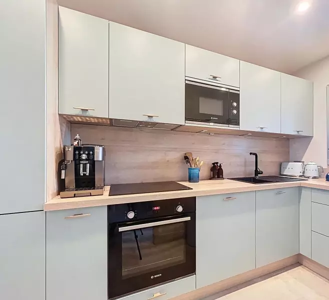 Квартира состоит из гостиной площадью около 30 м2, отдельной оборудованной кухни, двух спален с местом для хранения вещей, ванной комнаты с душевой кабиной и туалетом, а также гардеробной.