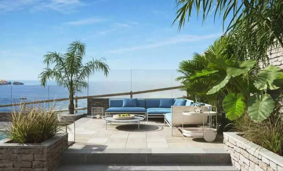 - Сад с дренажной системой, полностью готовый, включая растительность, гальку, сосновую кору, орошение и освещение.