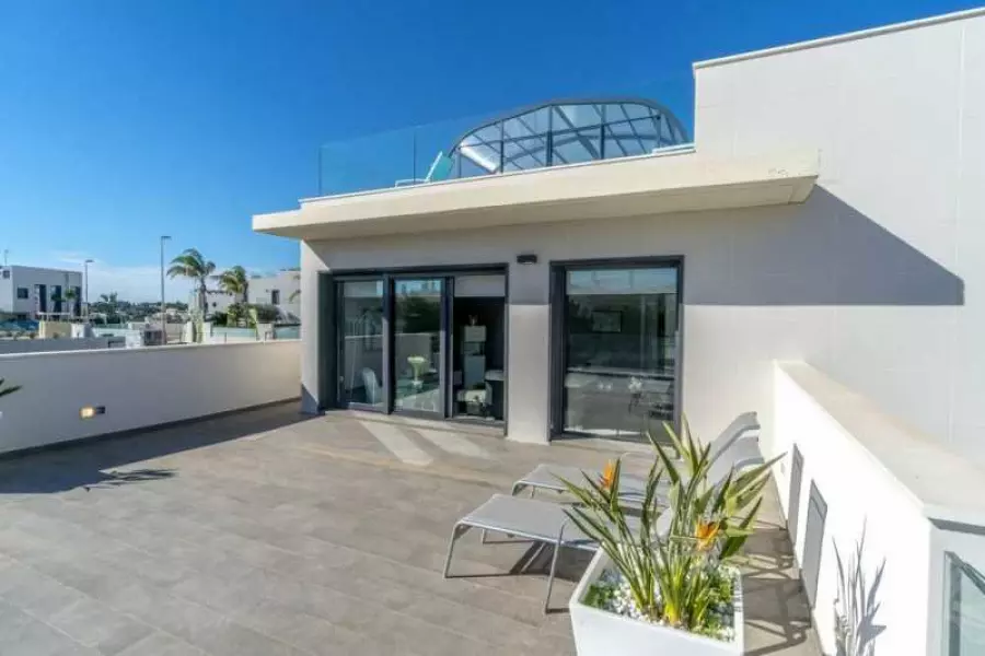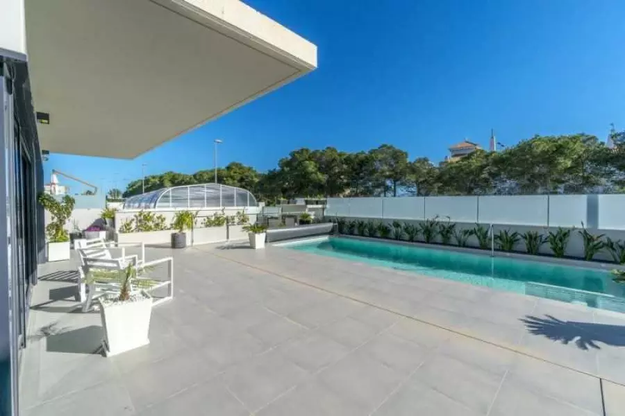 Представляем виллу класса люкс с видом на море в городе Ориуэла Коста в районе Кабо Роиг. Это живописный курортный район, часть испанского побережья Коста Бланка. В Ориуэле Коста можно насладиться исконным средиземноморским пейзажем – долинами, горными сосновыми и дубовыми рощами, лугами, насыщенными ароматами различных душистых растений. Окрестные соленые озера – бесценный источник важных минералов и лечебных грязей. Лагуна Салада – самое большое соленое озеро региона и близлежащий заповедный парк привлекает туристов со всего мира. Ориуэла Коста – известный испанский гольф-центр. Здесь находятся три известных гольф-клуба Las Ramblas de Orihuela, Campoamor и Villamartin. Ориуэла Коста - это 16 километров самых разнообразных пляжей, отмеченных наградой "Голубой Флаг" за отличное качество и развитую инфраструктуру. Данная часть побережья начинается от Торревьехи на севере и простирается до Торра де ла Орадада на юге. Вдоль Ориуэлы Коста располагается очень много популярных урбанизаций с хорошей сферой услуг.