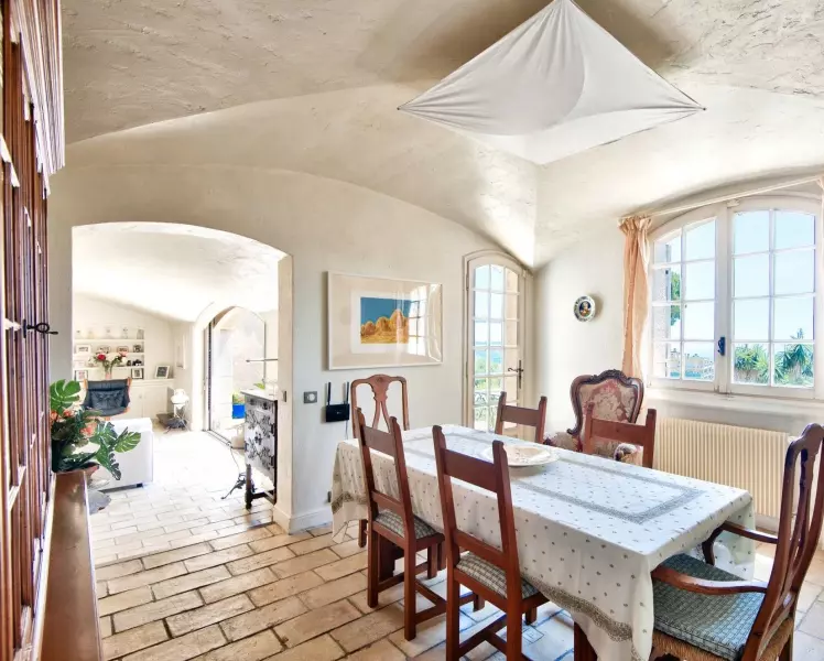 Расположенная на холмах над Ниццей, в популярном районе Парк Империал, эта элегантная вилла в нео-провансальском стиле площадью 280 кв.м, спроектированная архитектором Андреем Светчине, очаровывает своей изысканной архитектурой, просторными помещениями и панорамным видом на море, простирающимся от Мон-Борона до мыса Антиб. Вилла расположена на трех уровнях и предлагает большую гостиную с камином, выходящую на солнечную террасу, столовую, оборудованную кухню с террасой и площадкой для барбекю, а также 5 люксов, включая главную спальню.