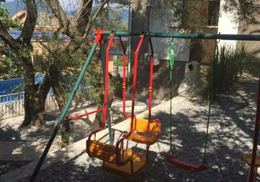 Снаружи – двор с несколькими зонами для отдыха, детская площадка, открытый бассейн, три паркинг места.