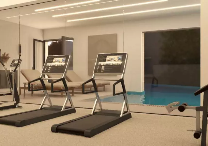 Техническая комната с центральным бойлером для нагрева воды. Тренажерный зал, сауна. Туалет и душевая