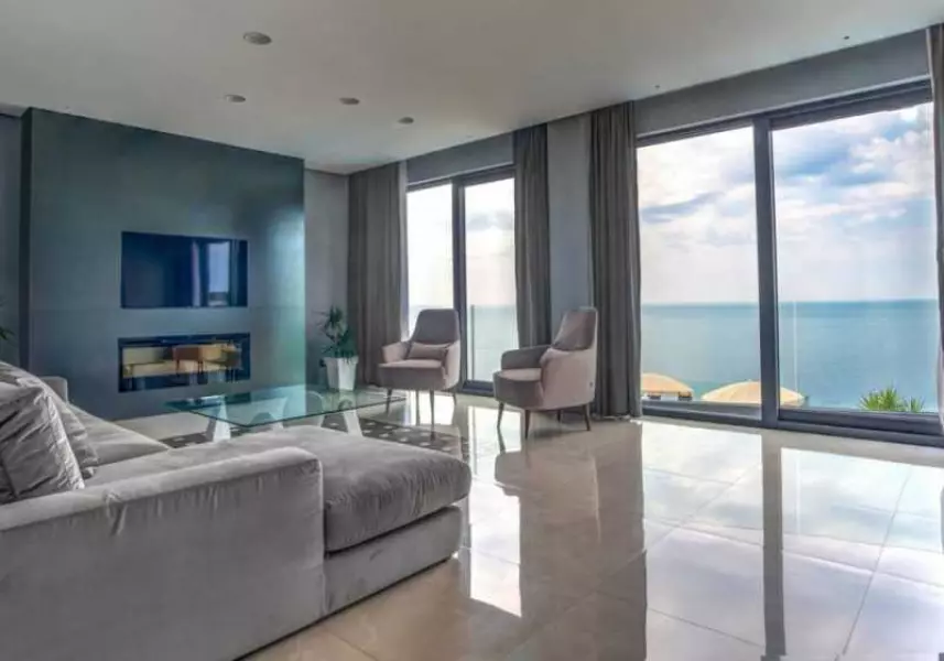 Три спальни. Гардероб. Ванная комната. Терраса. Маленькая комната с ванной, в которой одна стена из стекла – с потрясающим видом на море.