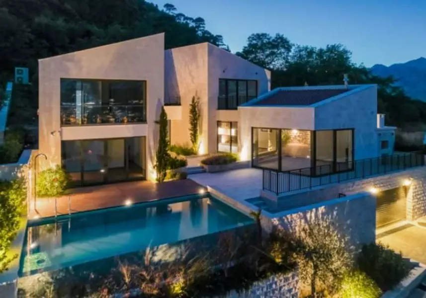 Бока Которская бухта, Прчань. Современная вилла класса люкс с бассейном и потрясающим видом на залив.