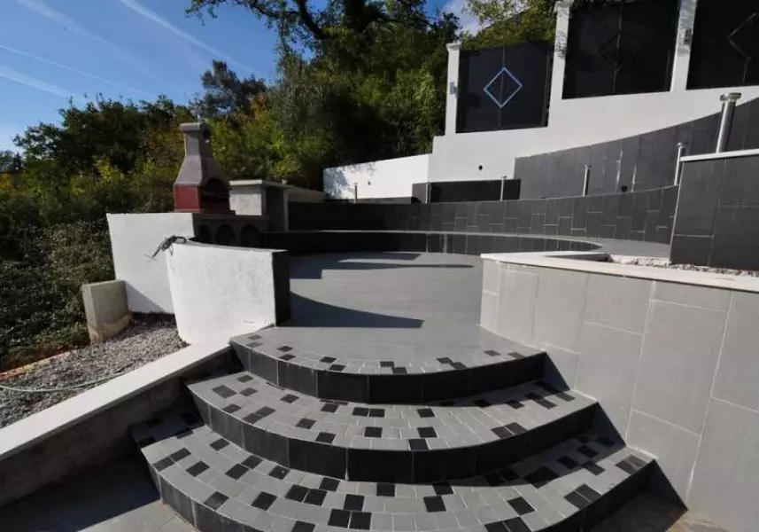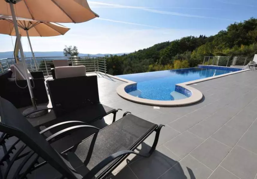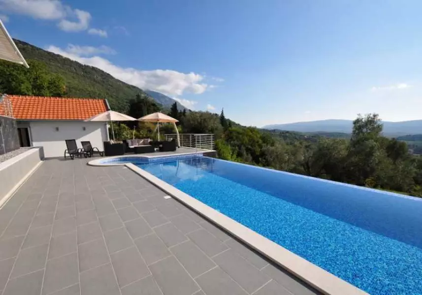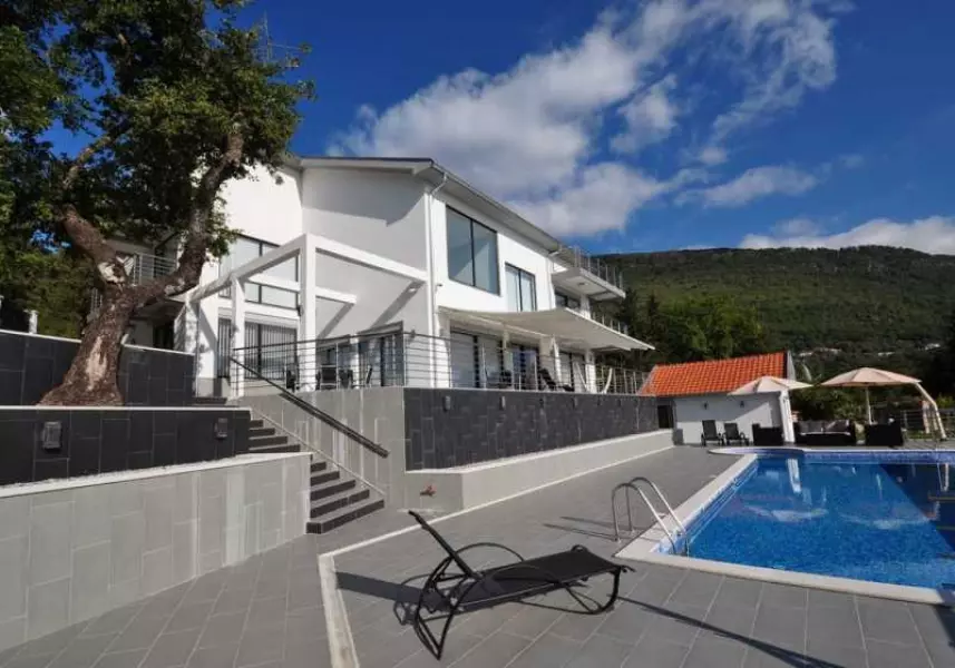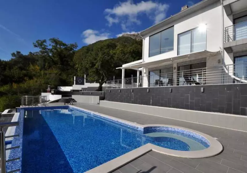 Эта вилла в г. Тиват - трехэтажный, современный особняк с 5 спальнями, отдельным гостевым домиком и большим бассейном.