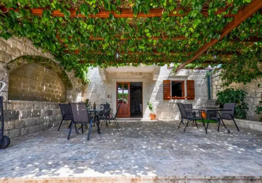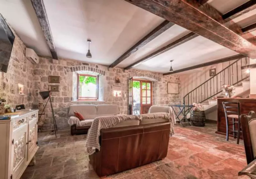 Бока Которская бухта, район Доброта. Элитный каменный особняк с шестью спальнями на первой линии у моря со своим собственным причалом