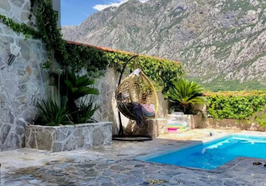 Вилла находится в самой красивой части Бока Которской бухты. Отсюда, на автомобиле, до Котора можно добраться за 7-8 минут. Двор и забор выложены натуральным камнем.