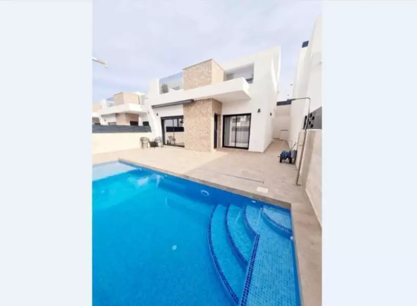 Вилла в два этажа, общей площадью 115 кв.м. В доме три спальни, две ванные комнаты, гостевой туалет, кладовка, терраса, кухня, солярий. Дом продается без мебели. Вилла построена в 2022 году.