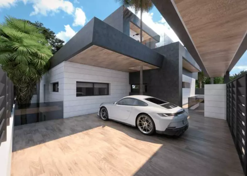 На участке 500 кв.м. находится частный бассейн площадью 37 кв.м, площадка для барбекю и туалет. На верхнем этаже находится просторная терраса-солярий площадью 58 кв.м. с туалетом и еще одним бассейном 21 кв.м. Кухня обустроена бытовой техникой марки BOSCH.