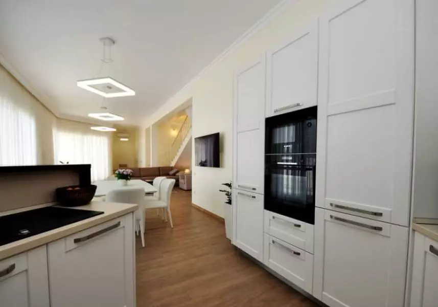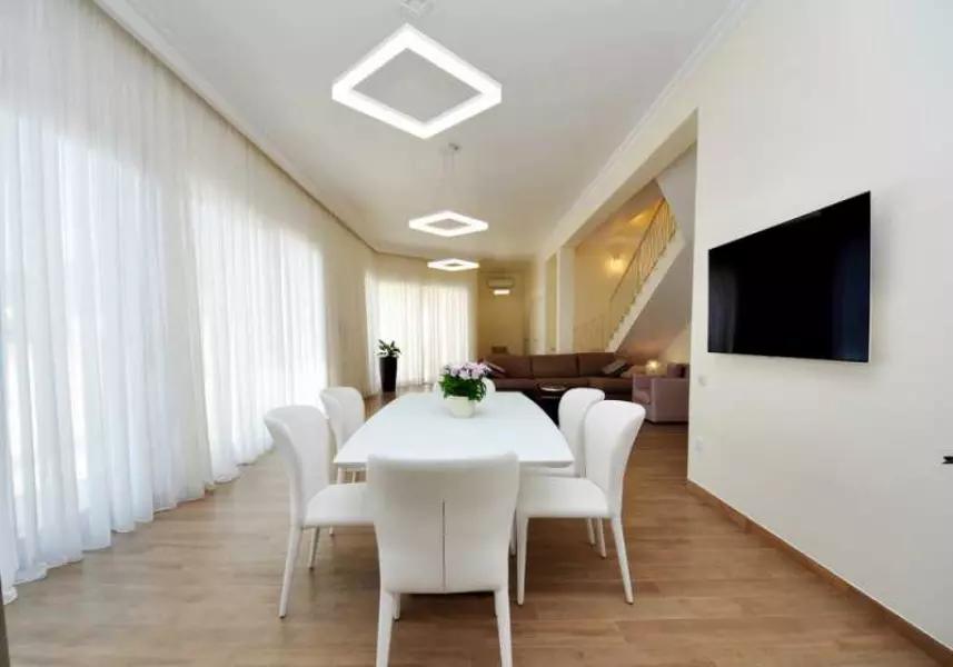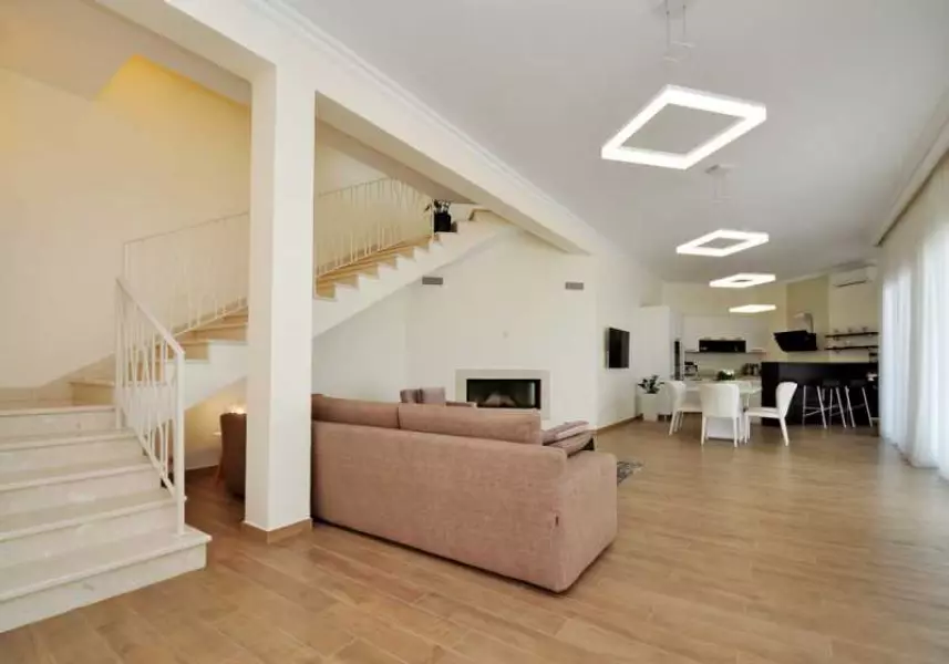 Новый дом в комплексе, состоящем из нескольких вилл, в тихом районе Тивата, в окружении средиземноморской растительности, на расстоянии 700-800 м от береговой линии. Идеально для постоянного проживания. Все виллы построены над локальной дорогой, на рельефе с небольшим наклоном, на высоте около 55 м над уровнем моря. Расположение на возвышенности обеспечивает живописный вид на Боко-Которский залив и город Тиват. Ниже дороги, непосредственно под участками с виллами, находится фруктовый сад, создающий дополнительную атмосферу уюта. Ведущая к комплексу дорога является тупиковой, что даёт тишину, покой и уединённость, находясь при этом практически в центре города и в непосредственной близости от основной городской инфраструктуры.
