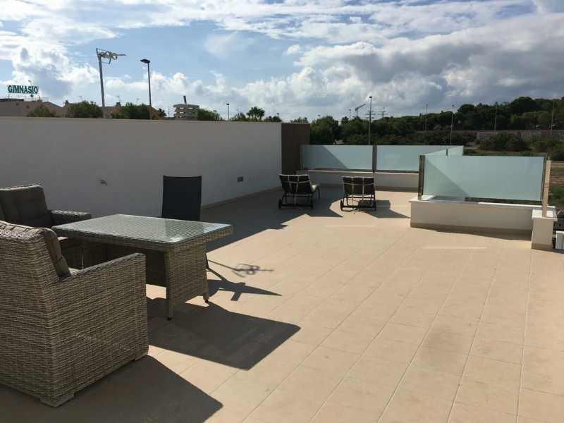Дом в один этаж, жилой площадью 65 кв. м, имеет просторную гостиную, две спальни со встроенными шкафами и две ванные комнаты. Кухня открытого типа оборудована мебелью и бытовой техникой. Также в доме есть солярий 89 кв.м. (территория на крыше, где можно загорать и наслаждаться видами на окрестности). На участке есть сад 38 кв.м. и солнечная терраса с навесом.