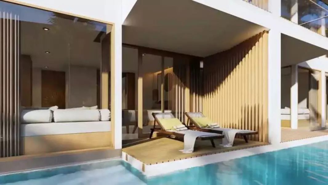 60 элегантных вилл с частными бассейнами, 64 люкса с общим бассейном в форме лагуны, самый большой пляжный клуб на острове Гили-Т с выступлением международных диджеев, а также 2 ресторана мирового класса.